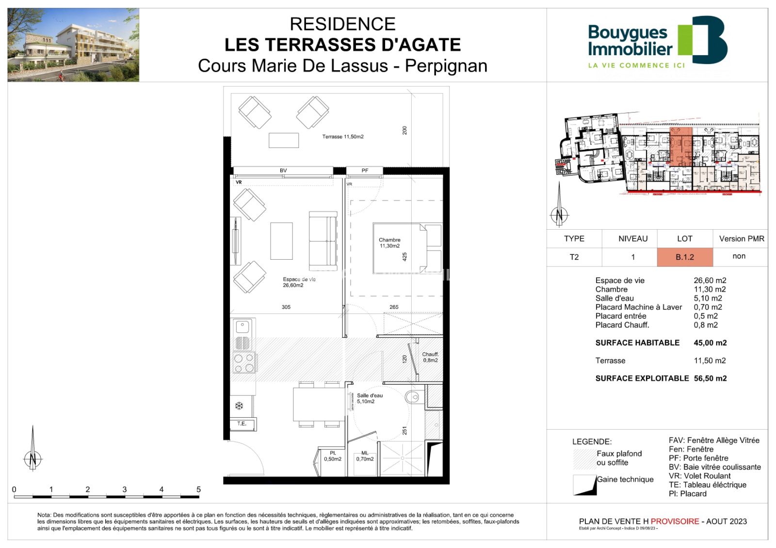 L'appartement en question de type F2 est situé au premier étage et comprend : entrée, cuisine séjour climatisé, terrasse 11.5 m² exposée Nord , une chambre climatisée, salle d'eau, WC . Il est vendu avec une place de parking exterieure privative sécurisée.