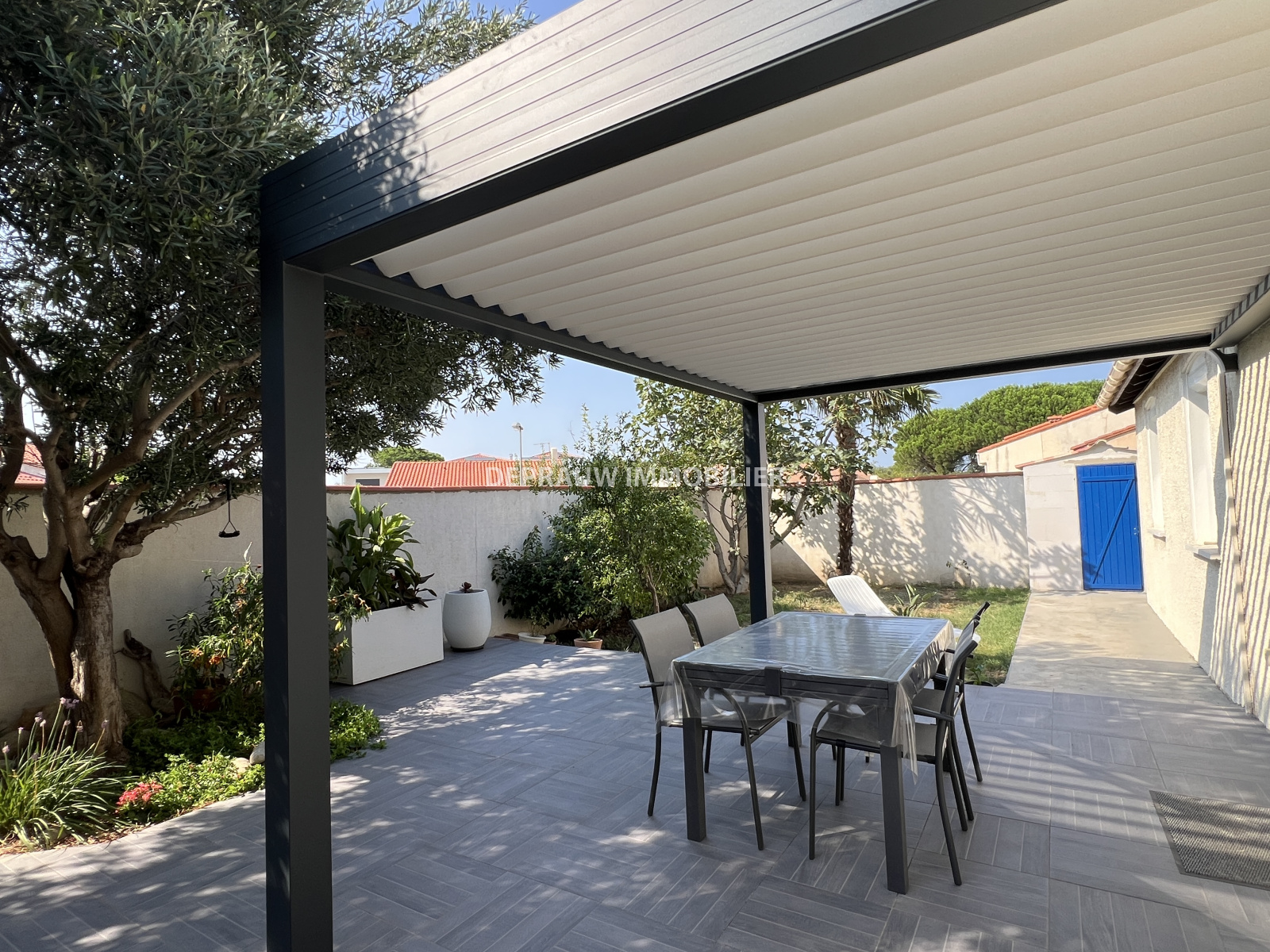 Le jardin arboré sur trois faces et la terrasse arrière agrémentée d'une pergola bioclimatique sont idéals pour partager des moments conviviaux en extérieur ! De plus la configuration du terrain, avec un seul voisin direct, est propice à la tranquillité.